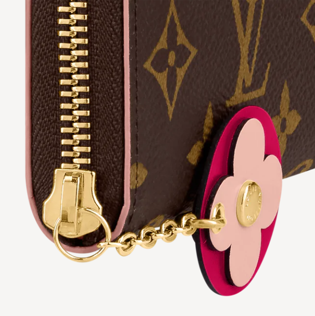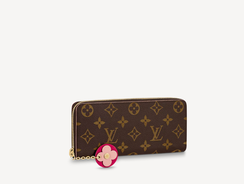 エレガントで実用的なルイ・ヴィトンのクラシカルな財布「ポルトフォイユ・クレマンス」。ピンクのレザートリミングとキュートなモノグラム・フラワーのチャームが繊細でフェミニンな雰囲気を添えます。