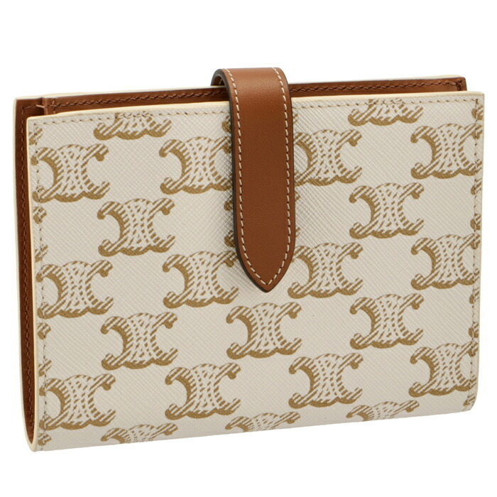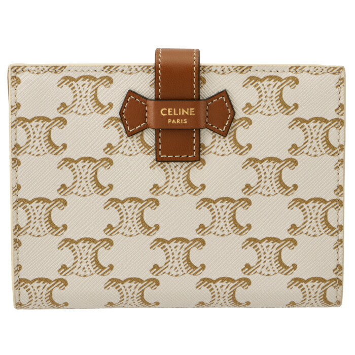 CELINE ミディアム ストラップウォレット ホワイト / タン (83697337)