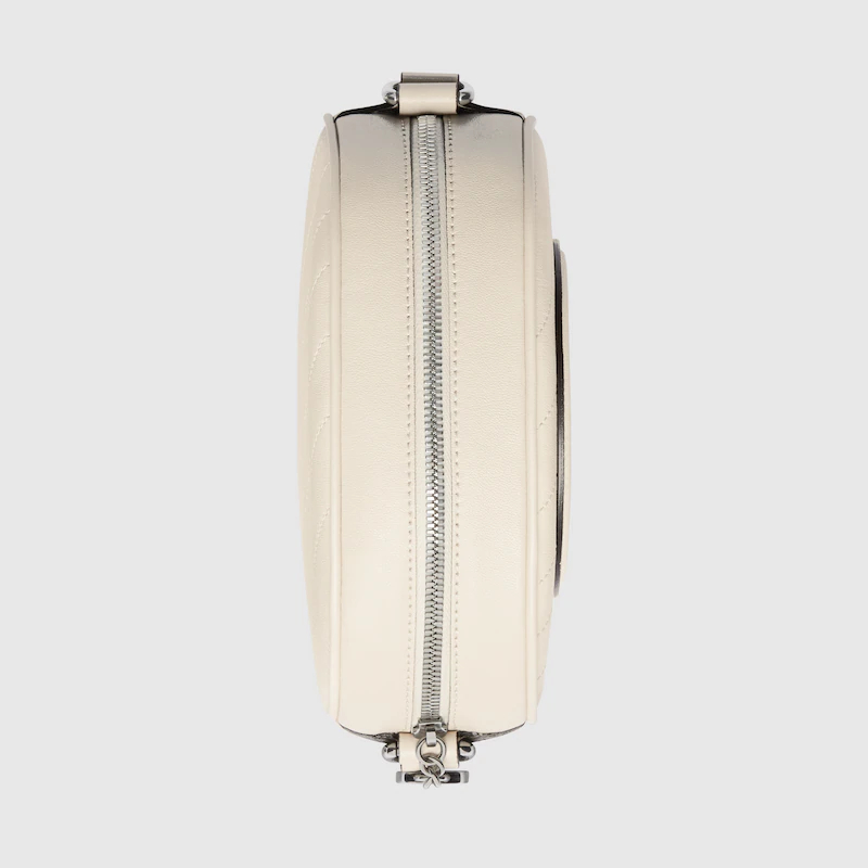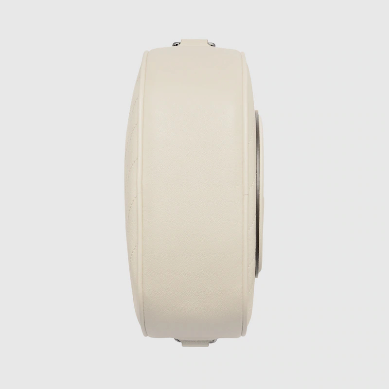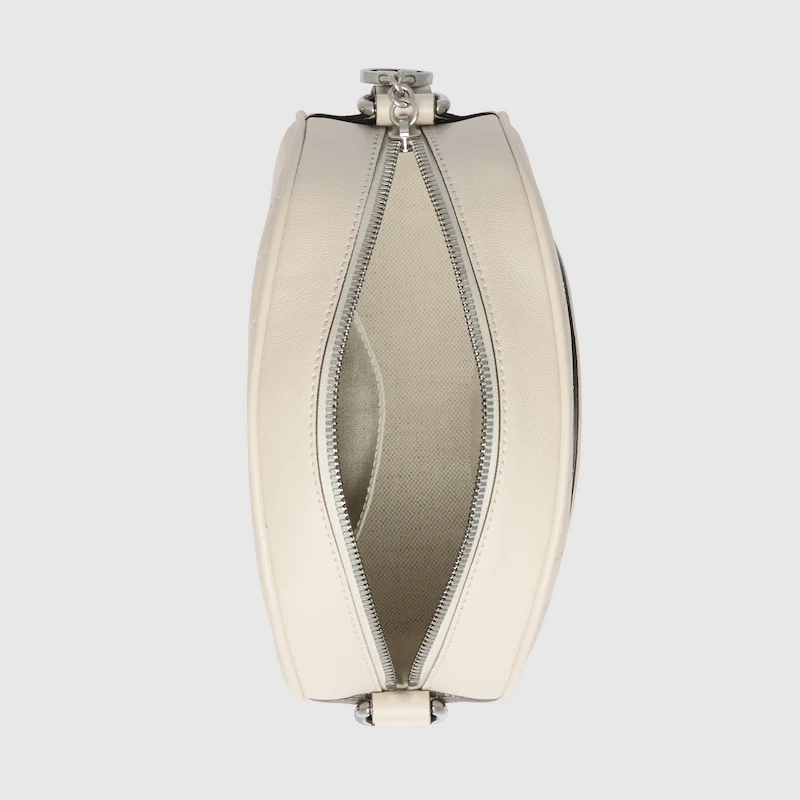 Despite being one of the House's boldest and most contemporary motifs. the Guthtcci Blondie continues to exude subtle style. thanks to its tonal leather appearance. Formed from a rounded geometric version of the Interlocking G. the line exemplifies Guthtcci's dynamicity. like this mini size in white leather.