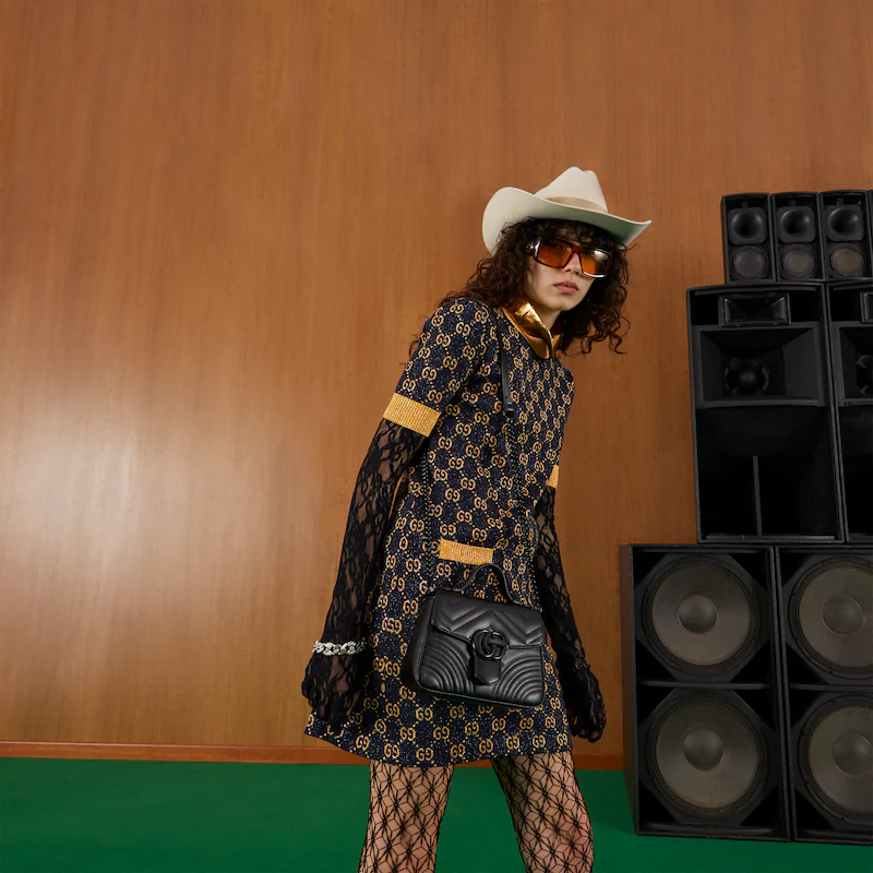Reflecting its origins. the GthtG Marmont is presented with a softly structured shape in black matelass�� leather. The Guthtcci Love Parade collection is a celebration of both archival codes and new designs. Playing with this concept. the accessory is introduced with monochrome hardware and a top handle.