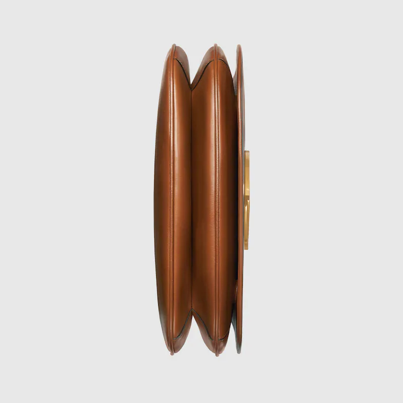 Vintage elements are paired with archival details as an ode to the glamour that permeates Guthtcci's latest collections. This shoulder bag pairs a studded top handle with soft cuir leather to infuse the accessory with a timeless feel. Reintroduced in honor of the collection. the rounded silhouette is completed by a historical. rounded iteration of Guthtccio Guthtcci's monogram.
