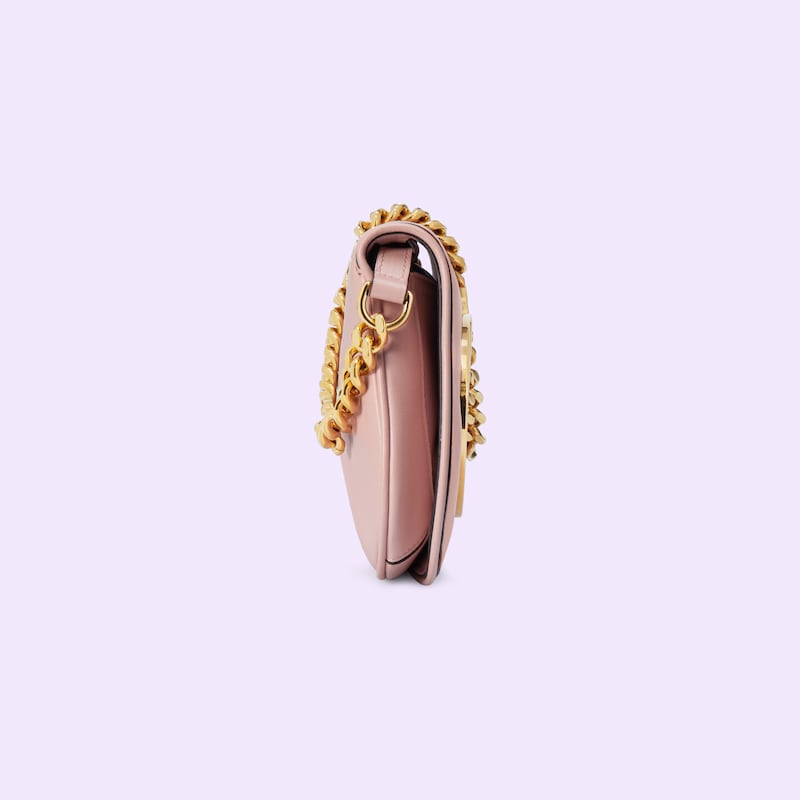 Vintage elements are paired with archival details as an ode to the glamour that permeates Guthtcci's latest collections. This shoulder bag pairs a delicate chain strap with soft leather to infuse the accessory with a timeless feel. Reintroduced in honor of the collection. the rounded silhouette is completed by a historical. rounded iteration of Guthtccio Guthtcci's monogram.