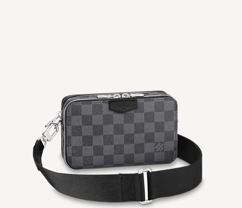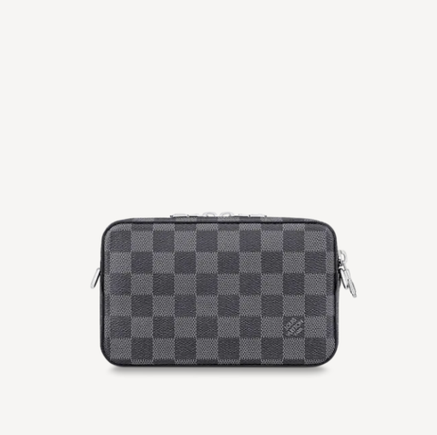 調節 & 取外し可能なストラップでさまざまな持ち方をお楽しみいただける、汎用性の高いコンパクトなバッグ「アルファ・ウエアラブル ウォレット」。ダミエ・グラフィット キャンバスで仕立て、トリミングにはブラックレザーを使用しています。広い間口とサイドのマチにより、身の回り品を簡単に出し入れすることができます。スマートフォンや財布などの持ち運びにも最適です。