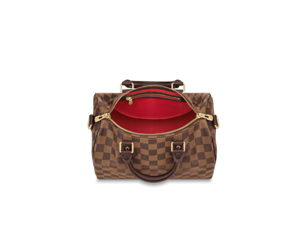 グラフィカルなダミエ・キャンバスで仕上げた「スピーディ・バンドリエール 25」。日常生活にぴったりのシティバッグです。「スピーディ」の前身であるバッグ「エクスプレス」は、1930年代の旅人のために作られたもの。その名は加速化が著しかった当時の移動手段にヒントを得ています。一目でそれと分かる独特のシルエット、ロール仕上げのレザーハンドル、刻印を施したパドロック、取外し可能なストラップなど、すべてのディテールが「スピーディ」を特別な存在にしています。