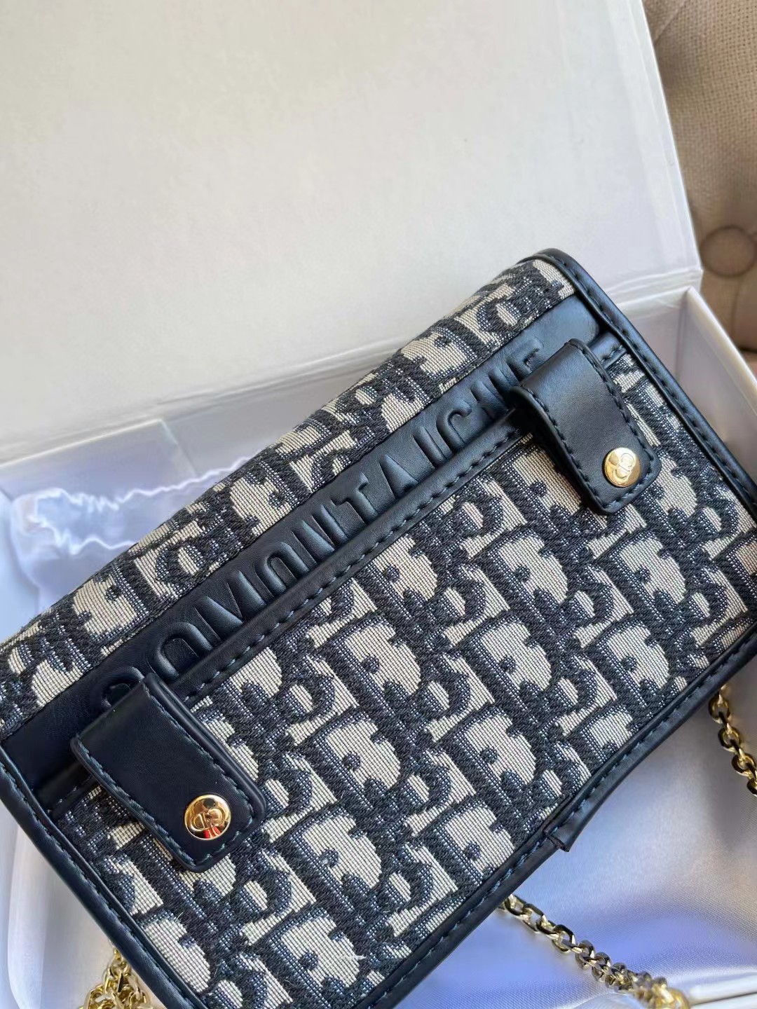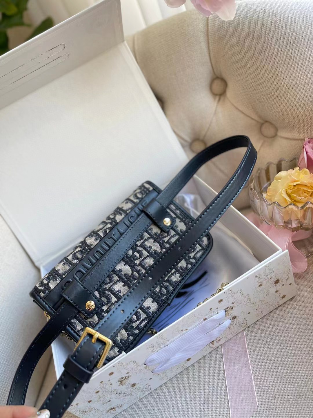 ブルーのディオール オブリーク ジャカードを使用し、フラップに「CD」シグネチャーをあしらっています。