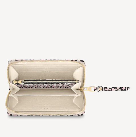 エンボス加工が特徴のモノグラム・アンプラント レザーに、アニマル・プリントのレザーのディテールが引き立つ、スタイリッシュな「ジッピー・ウォレット」。2021秋の「ワイルド・アット・ハート」カプセル・コレクションの1つです。洗練されたラウンドファスナー開閉式のデザインに、紙幣、コイン、カード、領収書をしっかり整理できる機能性を備えています。