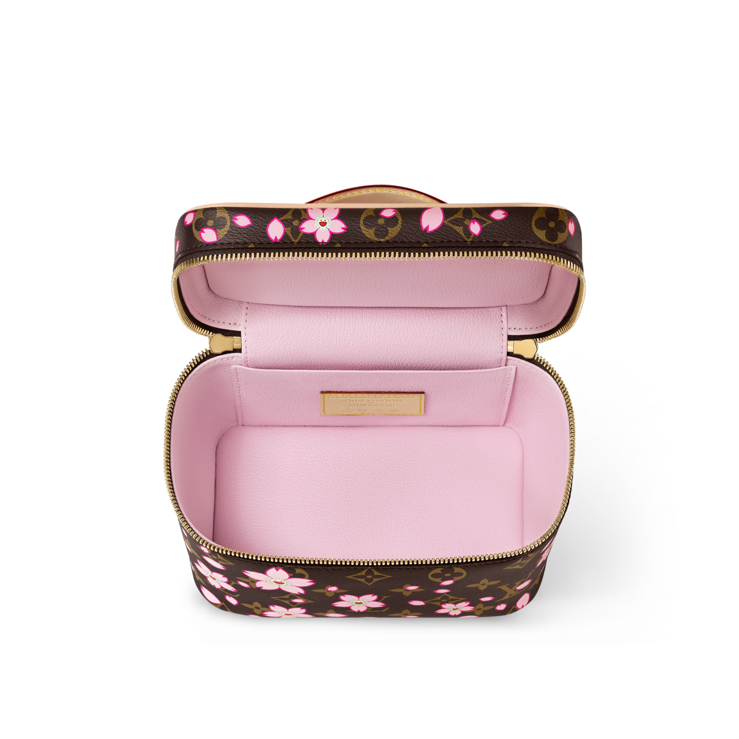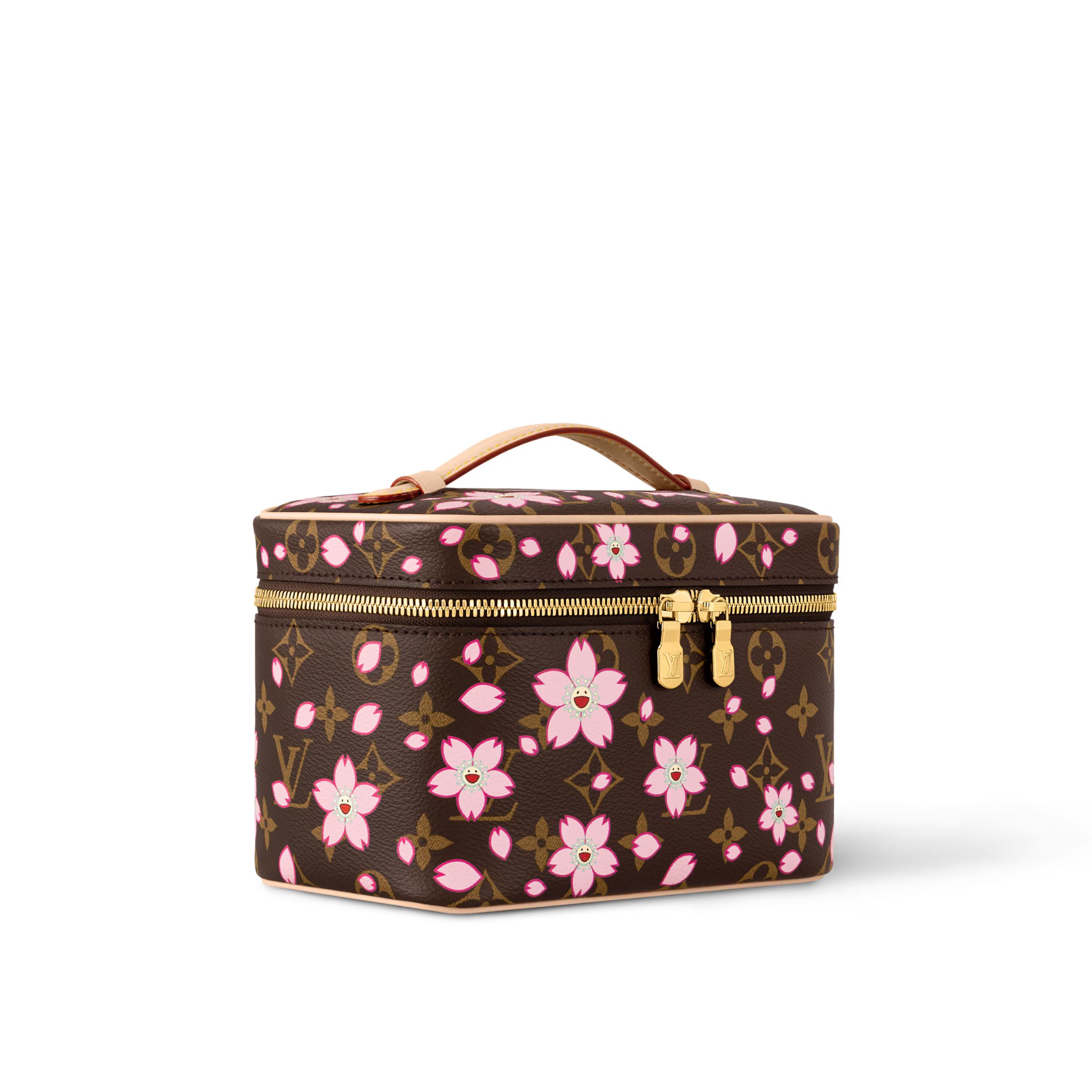 メゾンの定番のモノグラム・キャンバスを使用し、丸みのあるボクシーなフォルムに仕上げたコンパクトなトイレタリーバッグ「LV × TM ニース・ミニ」。「ルイ・ヴィトン × 村上隆」リエディション・コレクションの祝福ムードに溢れたチェリーブロッサム・モチーフをプレイフルに重ねました。ヌメ革のトップハンドルがシックで実用的なディテールを上部に添え、ゴールドカラーのダブルファスナー開閉式が身の回りの物をしっかりと保護します。