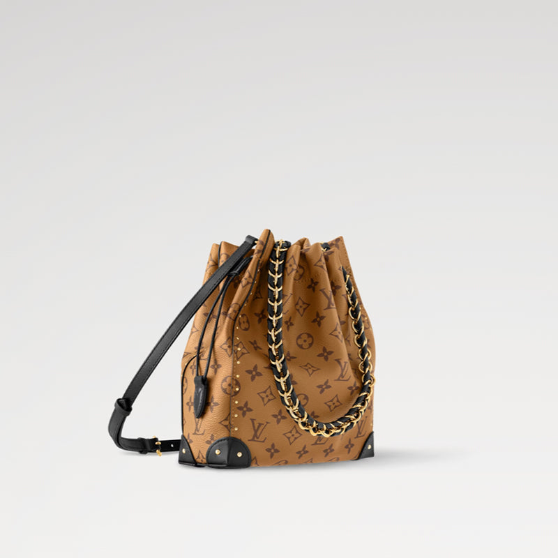 • 2025 クルーズ早春シリーズは、クラシックなノエ ハンドバッグを再考し、トランク ファミリーに新しいメンバーを追加します。モノグラム・リバース キャンバス バッグには、まばゆい編み込みチェーンが装備されており、レザーのコーナーとドローストリングの開閉部が象徴的なディテールを引き継いでいます。手持ちまたはクロスボディで持ち、ランウェイの外観を再現できます。