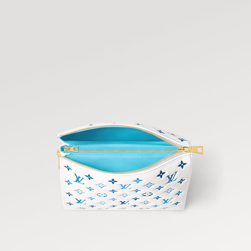 • LV By The Pool コレクションのこの小さなカッサン バッグは、水彩画効果のモノグラム プリントを施したモノグラム エンボス シープスキンで作られており、織りチェーンのエレガントな色調を反映しています。コンパートメント内にはジッパー付きポケットがあり、取り外し可能で調節可能な両面幅広ショルダーストラップで持ち運びが簡単です。
