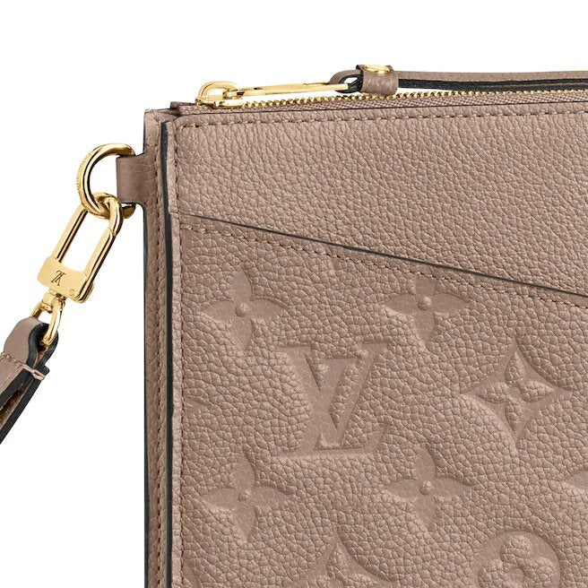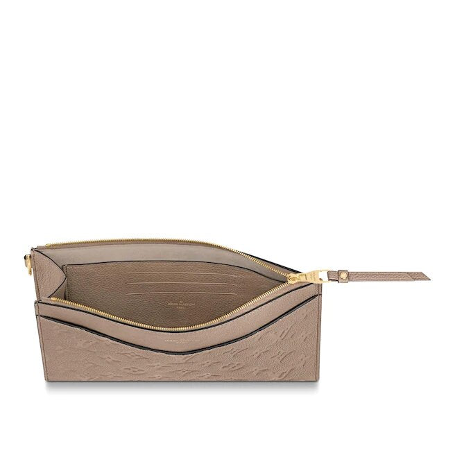 「ポシェットメラニーMM」は、やわらかいモノグラムアンプラントレザーを使用。 革は光沢のある巧妙にエンボス加工されたモノグラムで飾られています。 クラッチやブリーフケースとしてだけでなく、機内持ち込み手荷物や鞄としても使えるエレガントなジッパー開閉単品です。 「形のフロントポケットと3つのカードスロットがあります。取り外し可能なリストストラップが装備されています。