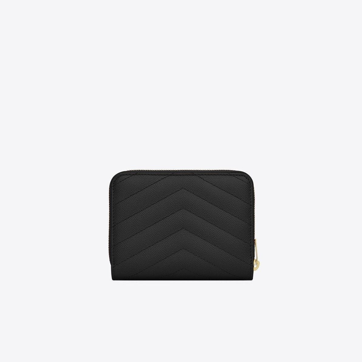 ラムスキンで作られた中央のゴールドトーンのメタルリンクYSLロゴが付いたクラシックなサンローランのショートウォレット。