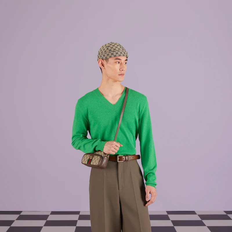 The world of Ophidia is enriched by a contemporary mini bag. crafted from the timeless mix of beige and ebony GthtG Supreme canvas. The logo appeal of this style is deepened by the green and red Web stripe and Double G hardware��archival details that celebrate Guthtcci's history.