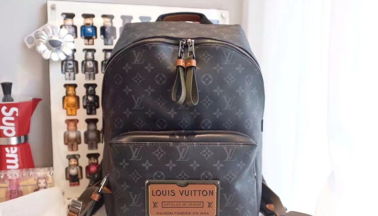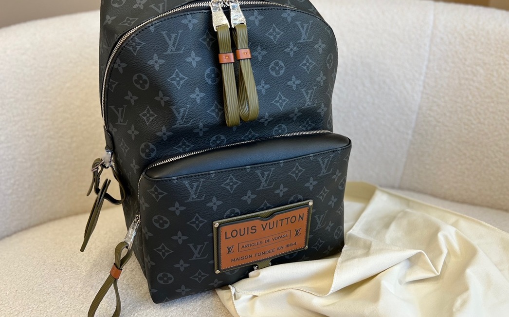 モノグラム・エクリプス キャンバスで仕立て、エンボス加工を施したレザーパッチをあしらった「ディスカバリー・バックパック PM」。