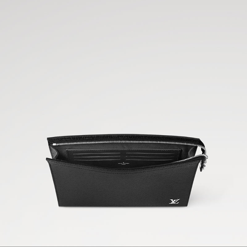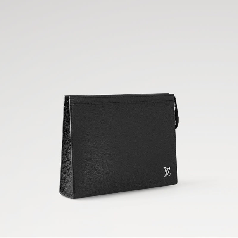 • 深みのあるカラーに染色したタイガ・レザーで仕立てた「ポシェット・ヴォワヤージュ」。バッグインバッグとしても、書類用ポートフォリオとして手持ちしても、多用途にお使いいただけるバッグです。右下にシルバーカラーのメタルで象ったLV イニシャルをあしらい、落ち着いた雰囲気に仕上げました。内側にはフラットポケットと6つのカードスロットを備えています。