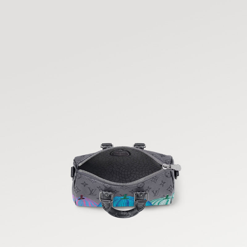 - LV x YK キーポル 25 ハンドバッグは、ルイ・ヴィトン x 草間彌生コラボレーション シリーズから登場し、クラシックなトラベル バッグのポケット バージョンに遊び心のある新しいひねりを加えています。モノグラム・エクリプス リバース キャンバスには、草間の目に映る温かさと楽観主義の象徴を再現するカラフルなカボチャのパターンが描かれており、この有名な芸術家とのブランドの深い友情を思い出させます。