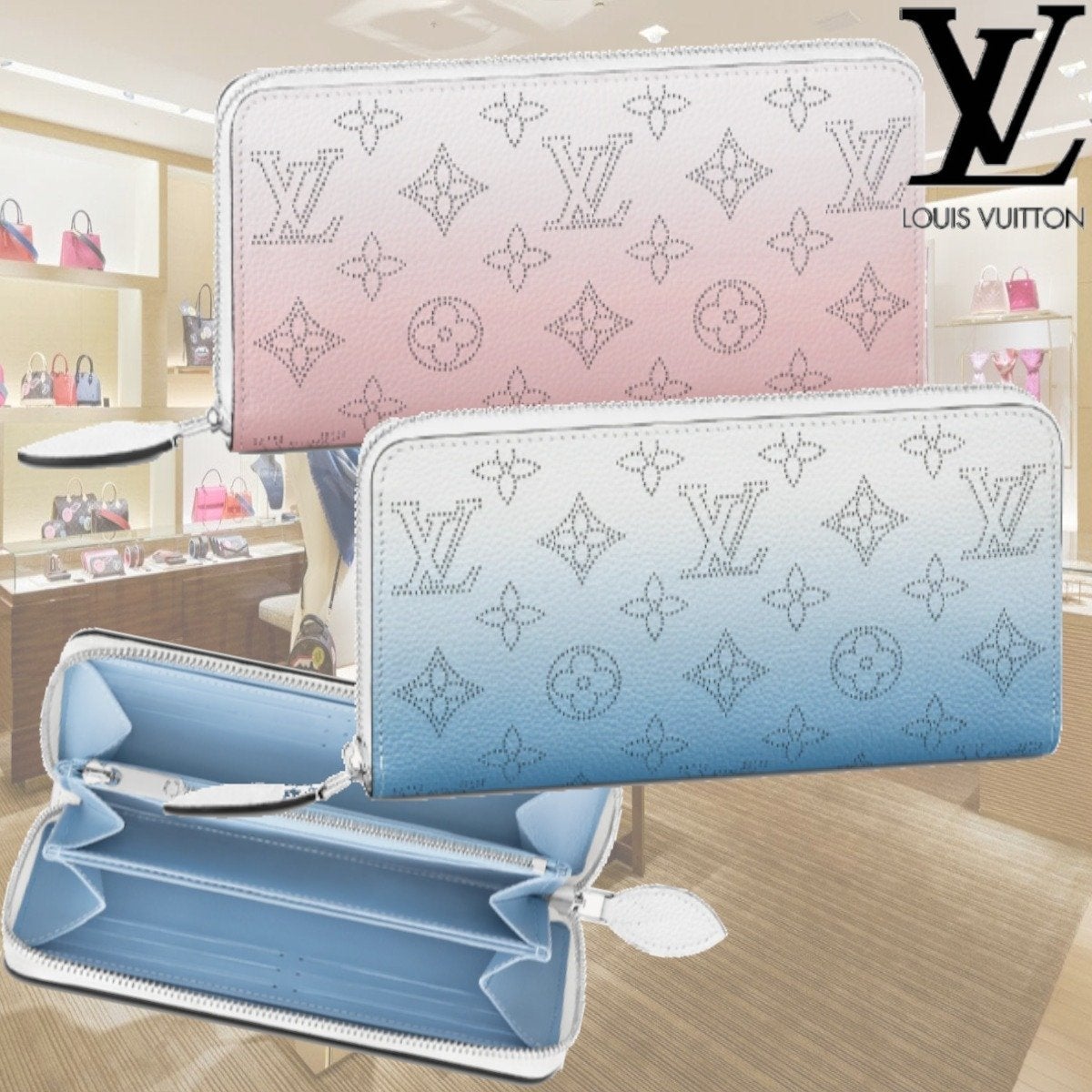 モノグラム・パターンのパーフォレーションと繊細なカラーグラデーションが際立つ柔らかいマヒナ・レザーで再解釈した「ジッピー・ウォレット」。コントラストの効いたレザーのライニングとシルバーカラーの金具で、洗練されたデザインに仕上げました。ラウンドファスナー付きで中の物を安全に運べる一方、複数のポケットやカードスロットを備えた整理しやすい内装も魅力です。