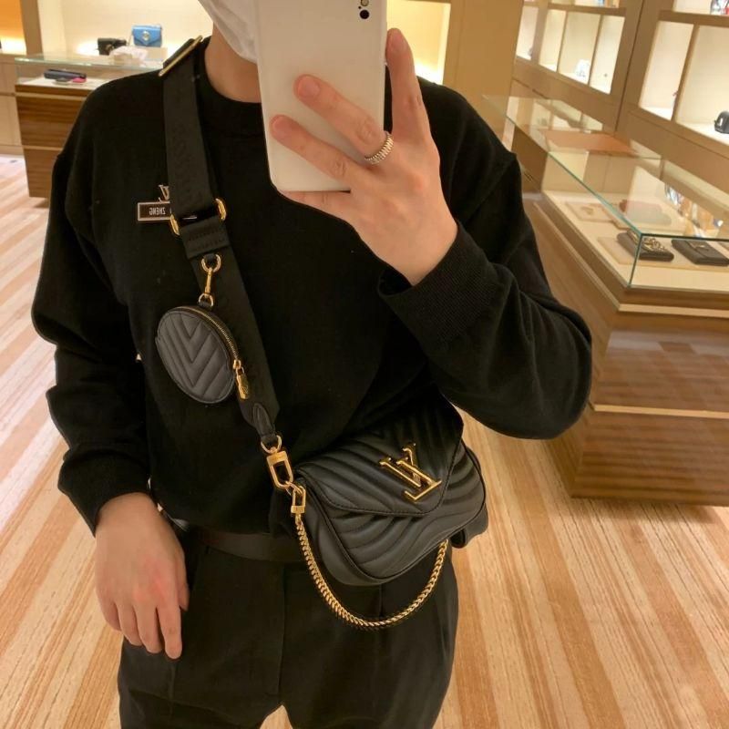 「マルチポシェット」はキルティングカーフスキンで作られています。 メッセンジャーバッグやハンドバッグの多機能単品としてお使いいただけます。 目を引くロゴの刺繍が施されたワイドショルダーストラップ、手やショートショルダーに持ち運べるゴールドチェーン、ショルダーストラップにスナップフックが付いた丸い小銭入れ、すべて取り外し可能なデザイン。多目的を最大限に活用しています。バッグファッションアクセサリー。