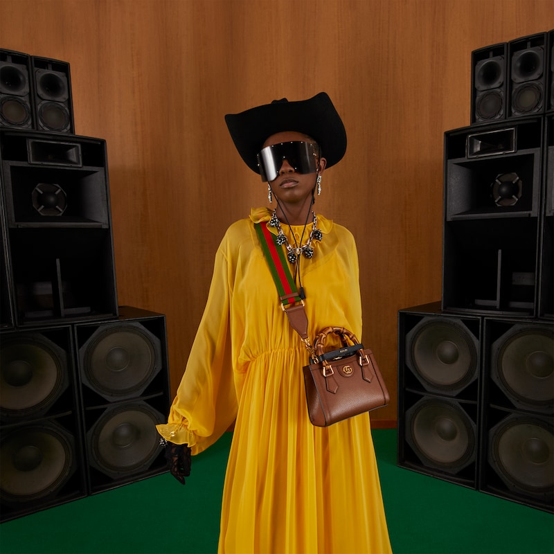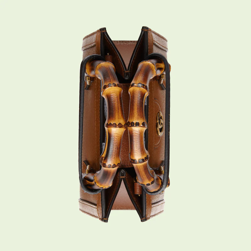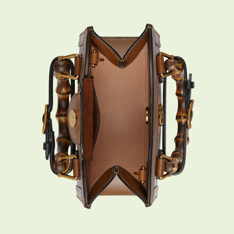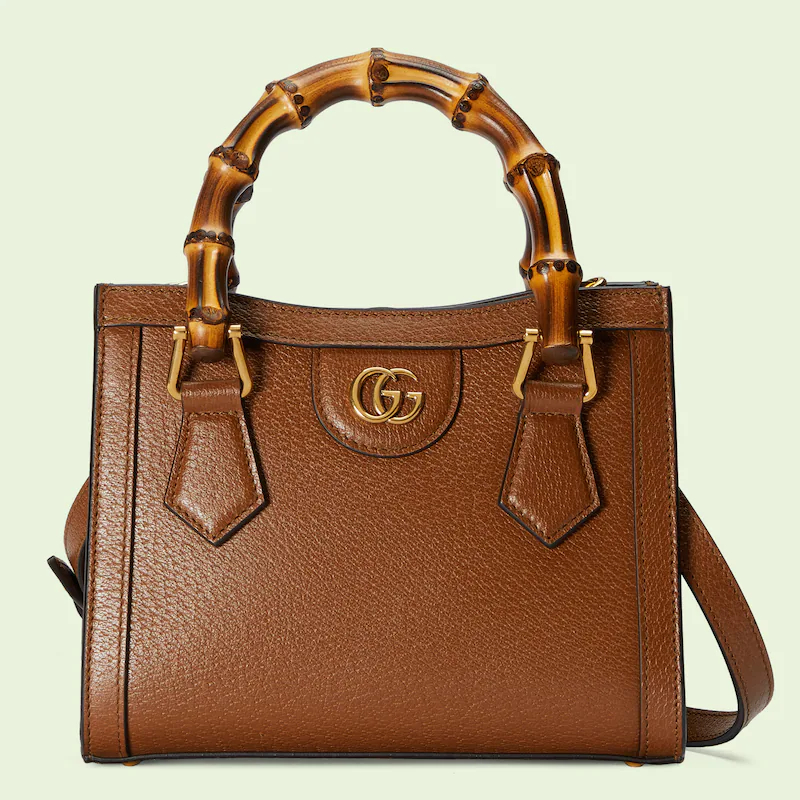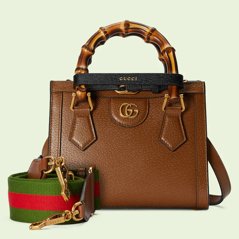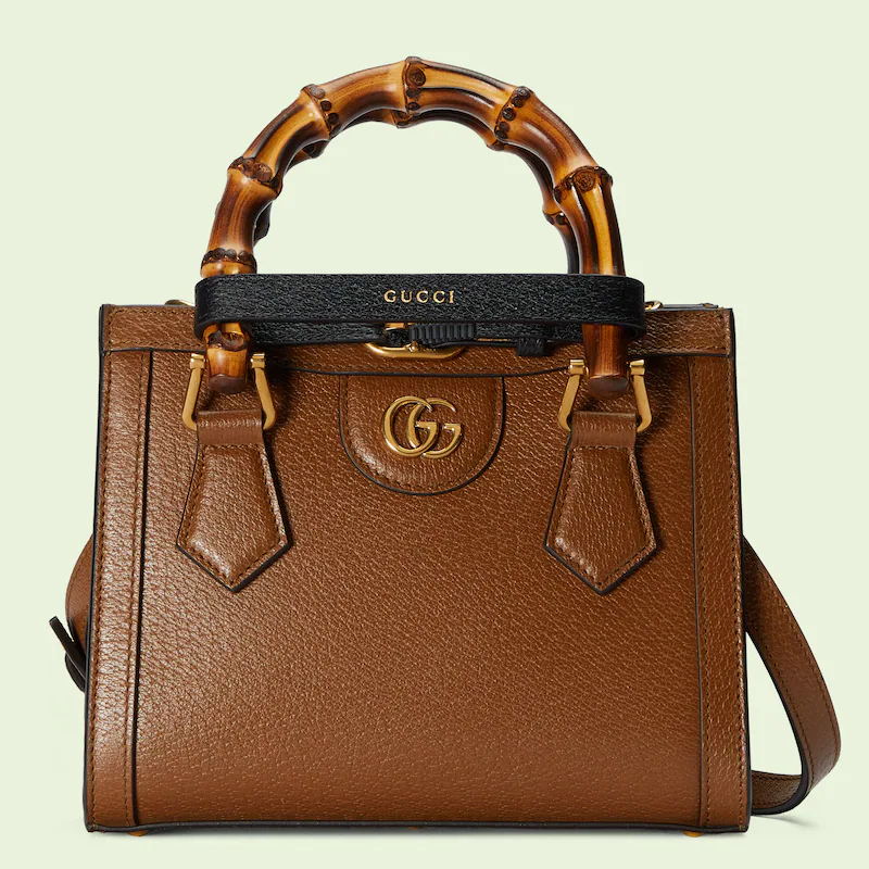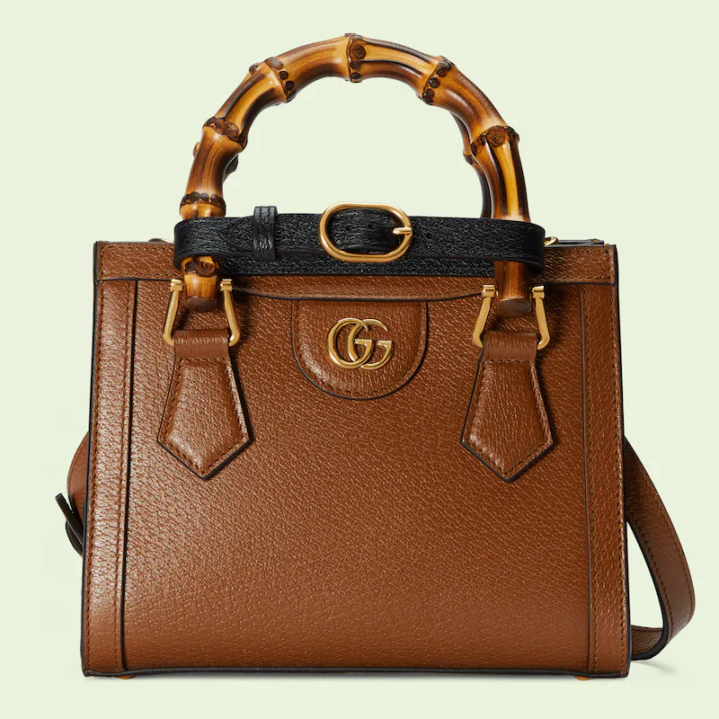 An evolution of a bamboo handle tote first introduced in 1991. the Guthtcci Diana represents the notion of style in constant evolution and is reimagined with removable. neon leather belts��a nod to the functional bands used to keep the handles in shape. Here. a mini version of the emblematic style is presented in cuir leather.