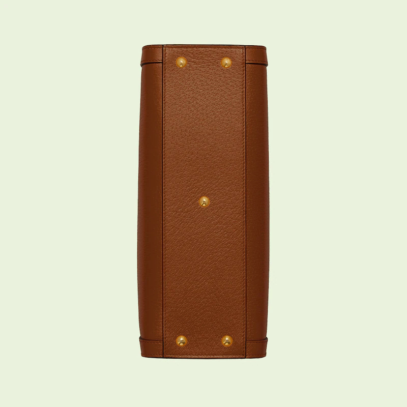 The concept of reinvention continues to shape the House's designs. An evolution of a bamboo handle tote first introduced in 1991. the Guthtcci Diana represents the notion of style in constant evolution. The design plays with traditional details and renews them new meaning. Playing with this idea. the functional bands used to keep bamboo handles in shape are reimagined as playful leather belts. Here. the tote is introduced in beige leather.