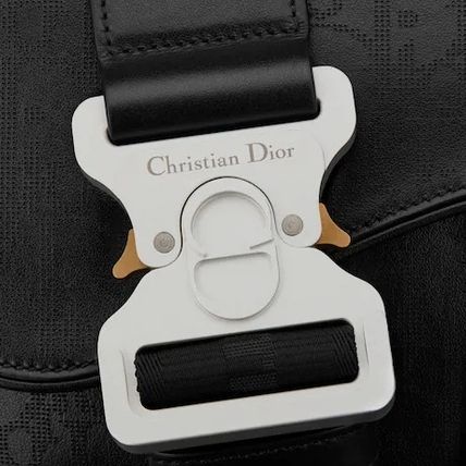 長さ調節可能なレザー ディテール付き“Christian Dior”ナイロンジャカード ショルダーストラップ