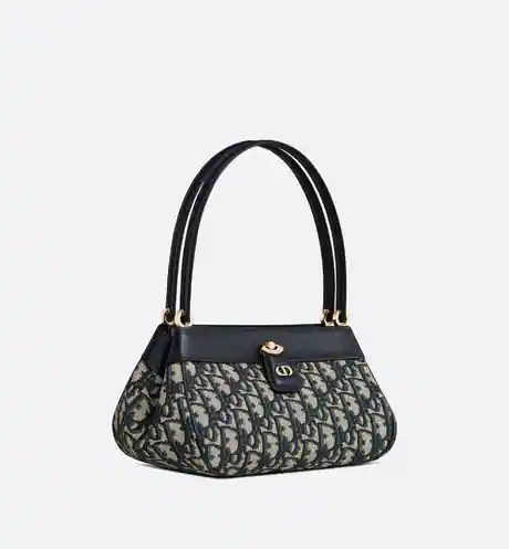 A pillar of the Spring-Summer 2023 fashion show. this season's new Dior Key bag draws inspiration from House archives to create a style with retro charm. Offered in blue Dior Oblique jacquard. it is distinguished by a CD twist clasp inspired by an exclusive lock and revealing a compartment to accommodate all the essentials. Featuring thin leather handles. the refined small bag can be worn over the shoulder or carried by hand to accompany all of this season's attire.