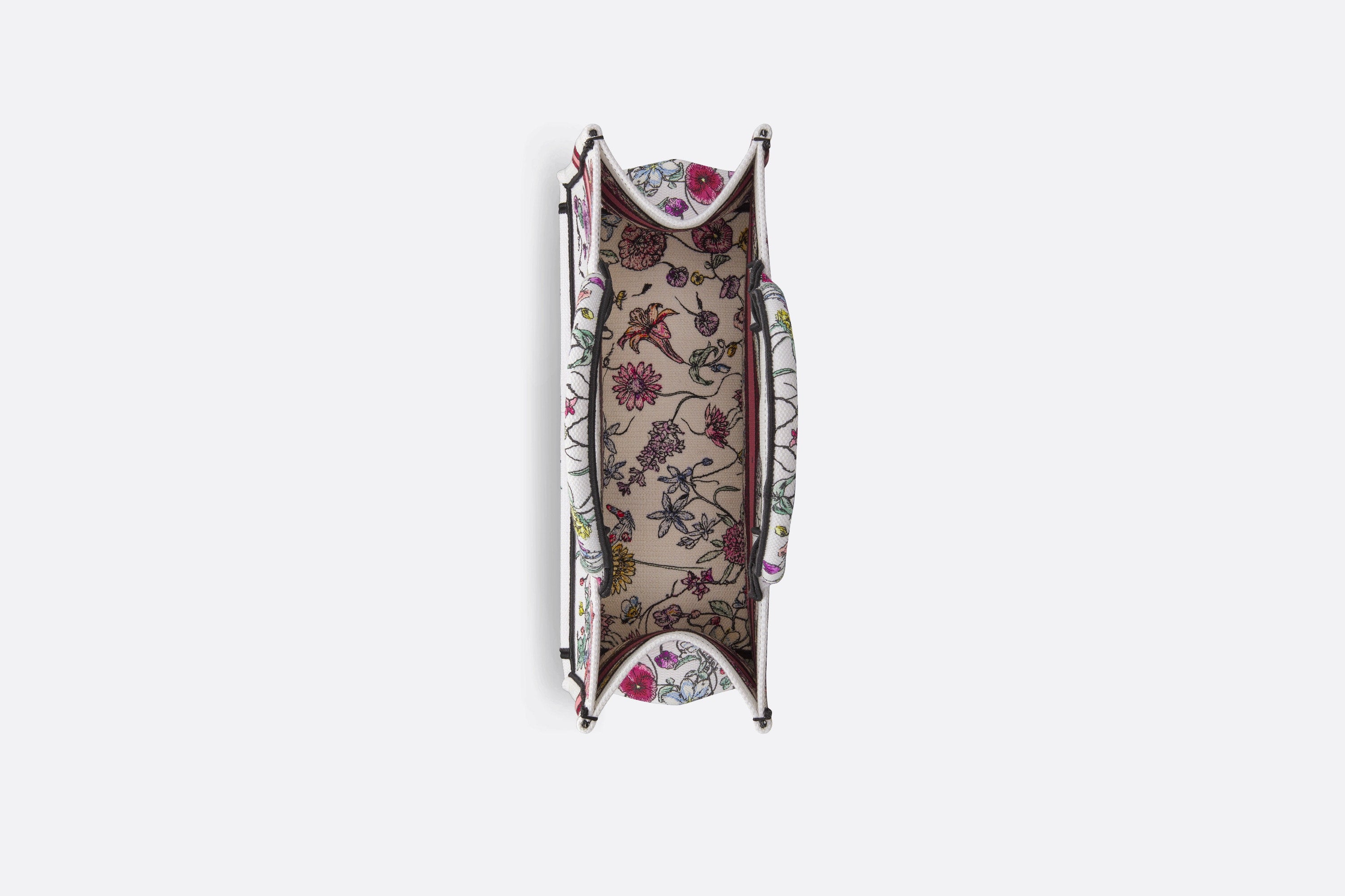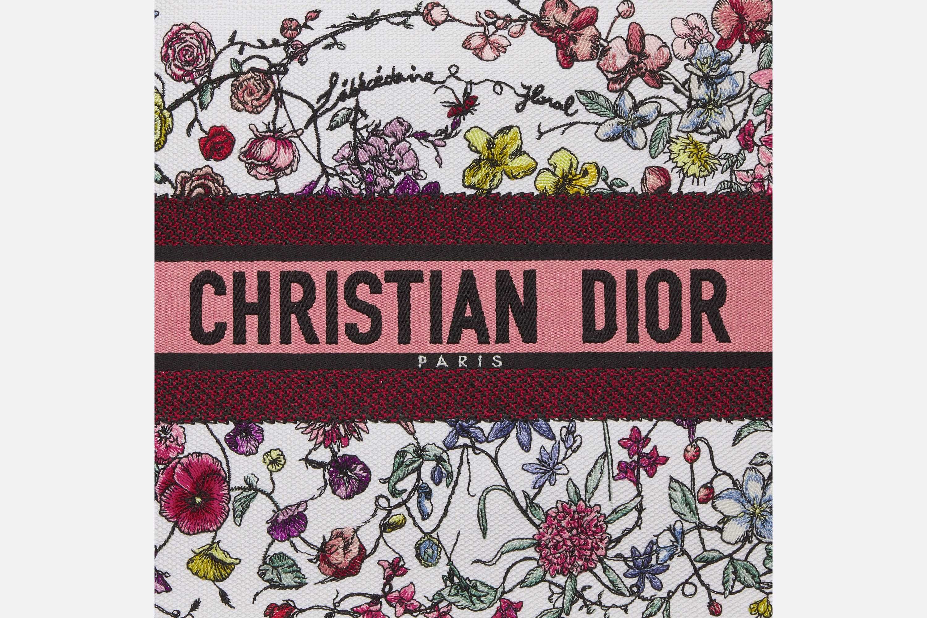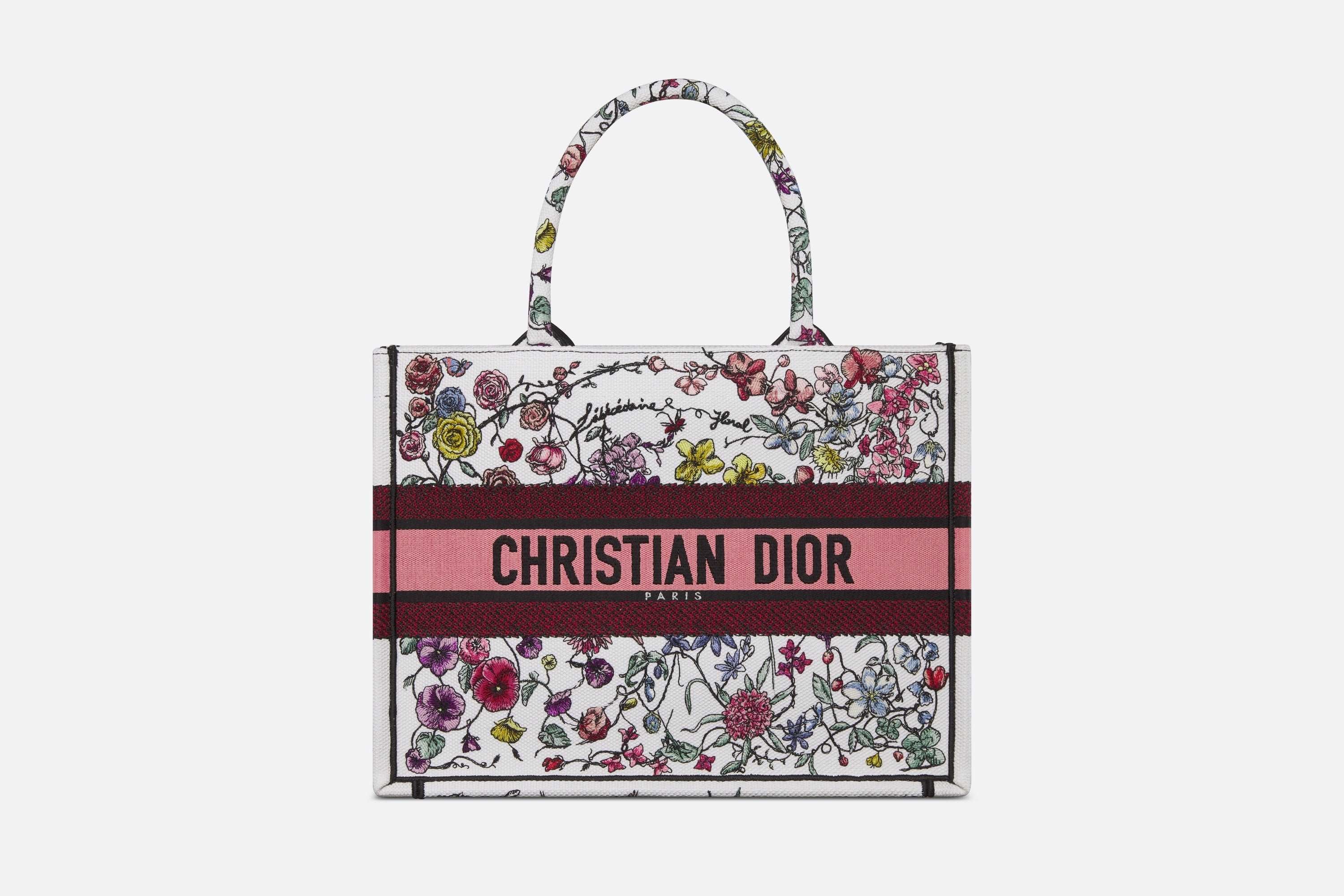 マリア・グラツィア・キウリが発表した「ディオール ブックトート」は、ディオールの美意識を語る上で今や不可欠なスタイル。毎日必要なものをすべて収納できるようデザインし、花が咲き乱れる牧歌的な風景を描いた、エレガントかつカラフルなホワイト系マルチカラーの「Florilegio (フロリレージョ)」モチーフを全面に刺繍しました。フロントのChristian Dior Parisシグネチャーが際立つ、メゾンを象徴するサヴォワールフェールを体現したトートバッグです。ミディアムサイズのこのモデルは、ハンドバッグまたはショルダーバッグとしてお使いいただけます。
