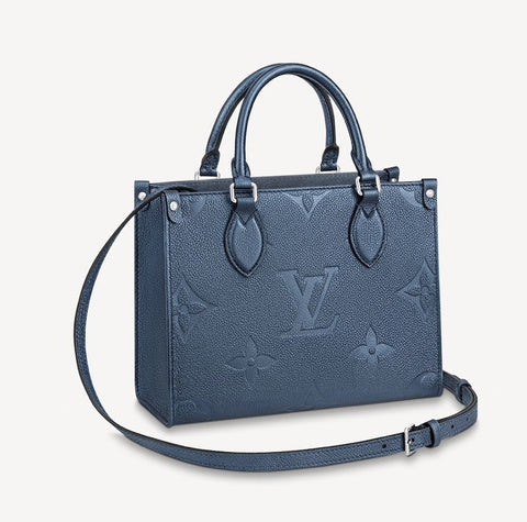 モノグラム・ジャイアント パターンをエンボス加工で施した、艶やかで華やかなネイビーブルーのモノグラム・アンプラント レザーで仕立てた「オンザゴー PM」。「オンザゴー」をミニサイズに再解釈したバッグは、コンパクトでありながらiPad Mini、スマートフォン、財布などの必需品がしっかりと入る収納力が魅力です。トロンハンドルで手持ちでも、取外し & 調節可能なストラップでショルダーバッグやクロスボディバッグとしてもお楽しみいただけます。