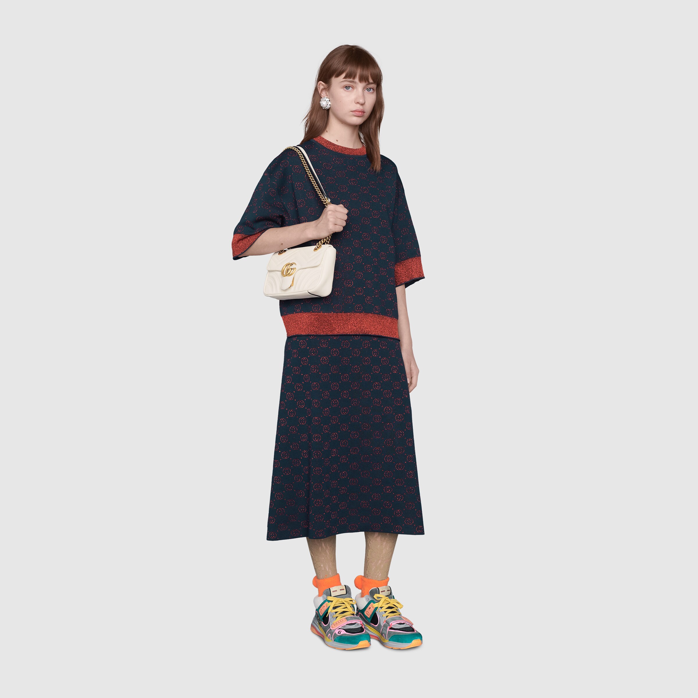 ソフトなストラクチャードシェイプが特徴的なスモールサイズの〔GGマーモント〕 チェーンショルダーバッグ。オーバーサイズのフラップ クロージャーにダブルG ハードウェアがあしらわれています。スライド式チェーンストラップにより、ショルダーバッグからトップハンドルバッグまでさまざまなスタイルでご使用いただけます。バックのGGが印象的なキルティング シェブロンレザー製。