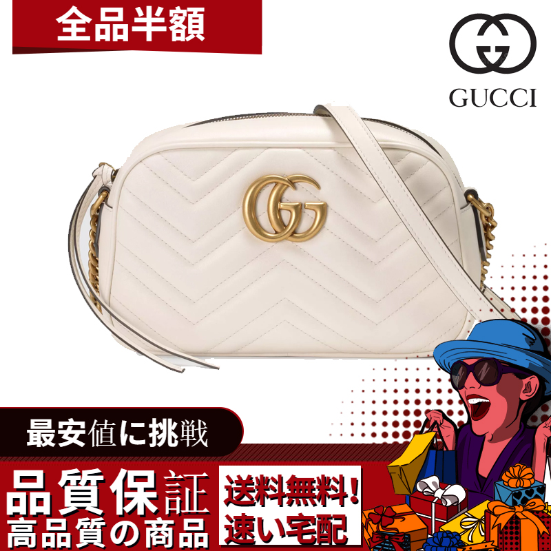 - バックにGG付き ホワイト キルティング シェブロンレザー