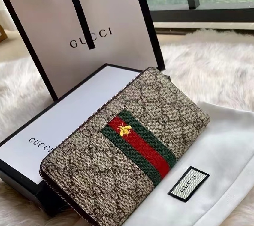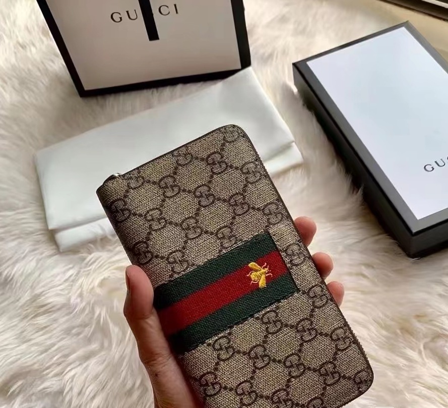 シグネチャーウェブとビー(ハチ) ディテールが印象的なGGスプリーム キャンバス製のジップアラウンドウォレット。
