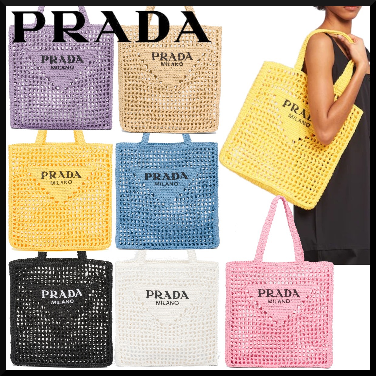 PRADA プラダ レディース ラフィア トートバッグ 人気 全9色