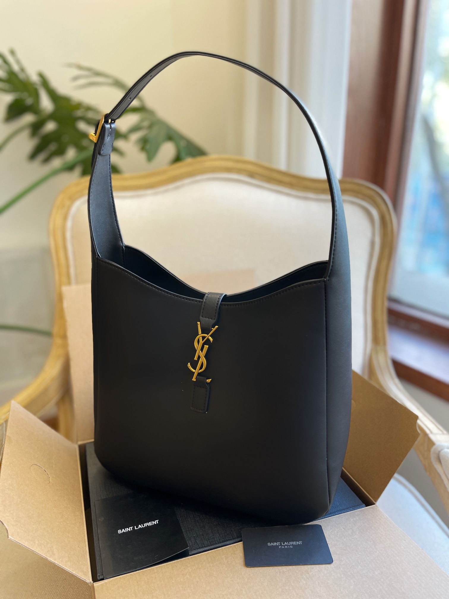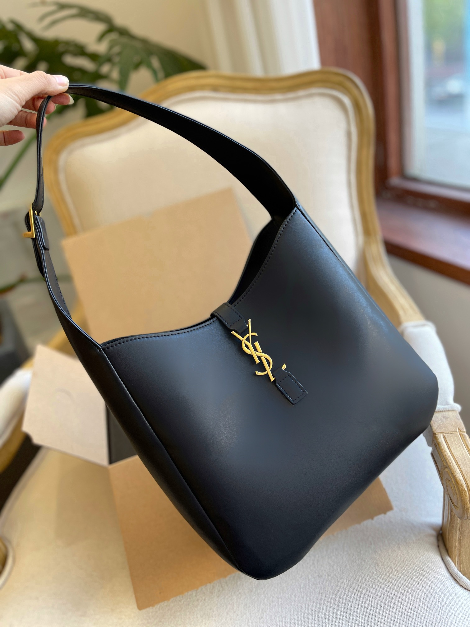 YSLモノグラムのメタル織り面ファスナー